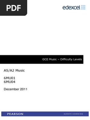 - Gce Edexcel Difficulty Booklet Gce Advanced Level United Kingdom Suite Music